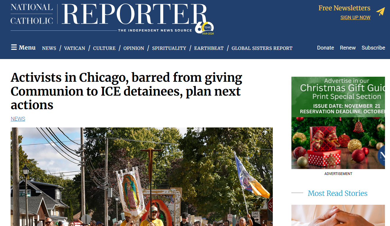 Camillo Barone of National Catholic Reporter tells the story of our October 11, 2025 Eucharistic Procession to Broadview Detention Center.